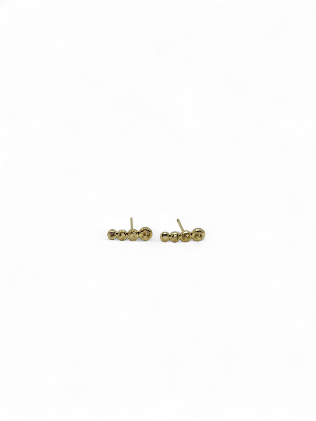 Simples e elegantes, esses brincos são a personificação do minimalismo sofisticado. Com um design moderno que apresenta uma sequência de esferas delicadamente texturizadas, essa peça banhada a ouro 18 quilates é perfeita para quem busca um toque de elegância discreta, mas impactante.