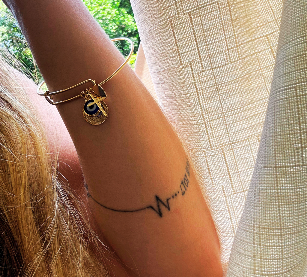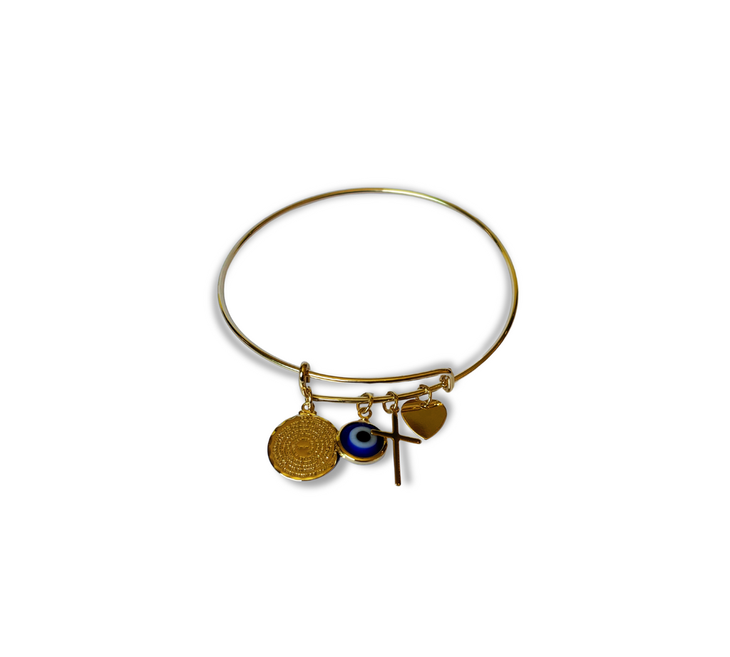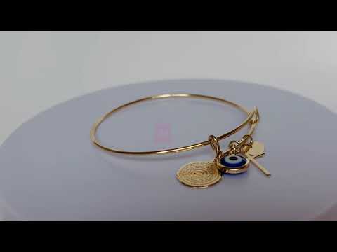 Composta por um delicado círculo texturizado, um olho grego azul para proteção, uma cruz que simboliza fé, e um coração que representa o amor, essa pulseira é mais do que um acessório, é uma declaração de valores e crenças pessoais.
