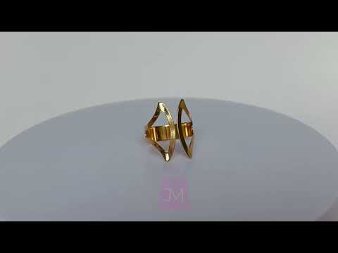 Esse anel banhado a ouro 18 quilates é uma peça encantadora e cheia de estilo, com um design vazado que traz leveza e sofisticação. A forma aberta e simétrica remete a um desenho floral ou folhoso, criando um efeito delicado e, ao mesmo tempo, moderno.