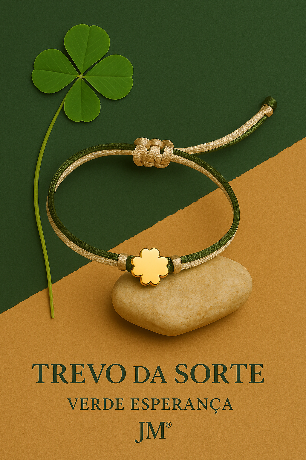Feita com cordão de seda ajustável em verde musgo e bege perolado, essa pulseira carrega um símbolo clássico de boa sorte: o trevo de quatro folhas banhado a ouro 18k, hipoalergênico e com brilho suave. O nó central traz equilíbrio e conexão — perfeita para quem acredita que sorte se atrai com intenção.